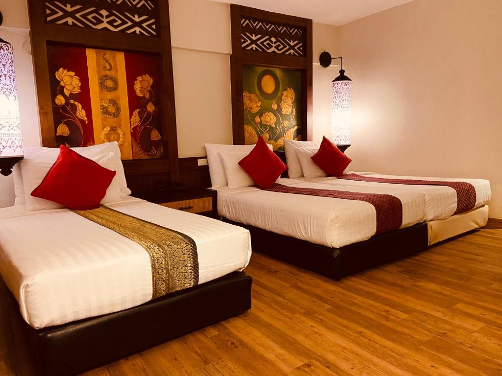 Nakra Nakara Hotel is a 12-minute drive from the impressive Rung Khun Temple, the city's most popular landmark, which was built by a famous Thai painter. It offers modern Lanna-style rooms with free Wi-Fi, massage services and an outdoor pool.The hotel is a 2-minute walk from the pedestrian street and the Museum of the Tribes of the Mountains. It is a 5-minute walk from Po Khun Meng Rai Monument, a 5-minute drive from Night Bazaar and Chiang Rai Bus Station and around a 15-minute drive from Chiang Rai Airport.